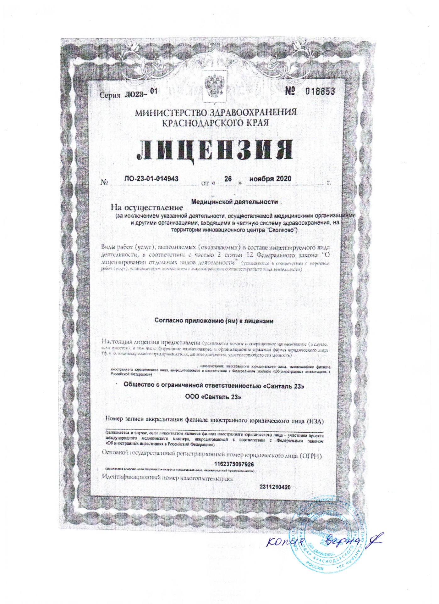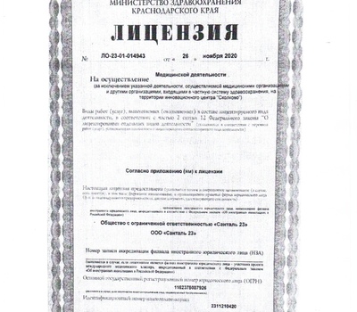 Медицинские услуги оказываются Партнером (ООО «Санталь 23» номер лицензии ЛО-23-01-014943, дата выдачи лицензии: 26 ноября 2020 г.)